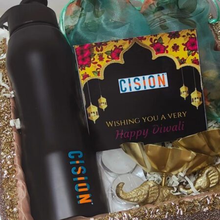 Present a touch of class with our corporate gift hamper ‘Executive RoseGold Retreat’ set, a refined choice for discerning clients and top-performing teams. Nestled in an elegant RoseGold tray, this set includes a beautifully customized flask, ideal for the busy professional who appreciates both style and functionality. The inclusion of a decorative metal elephant Diya brings a unique cultural flair, perfect for enhancing any office decor. Delight in our selection of gourmet snacks: almond brittles for a sweet crunch, and flavored makhana and cashews that offer a delightful savory treat. Each component is meticulously arranged over a layer of shred paper, adding to the luxurious unboxing experience. A personalized note card is also included, allowing for a bespoke message that reinforces your thoughtful consideration. This gift set not only impresses but also delivers a message of appreciation and high regard in the corporate world.
